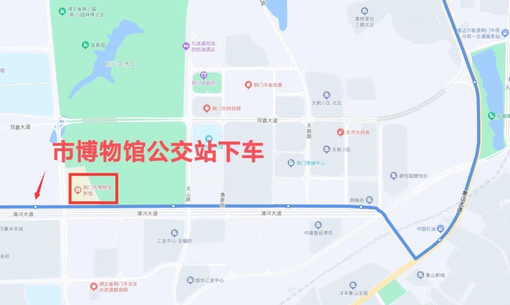乘坐21路公交車(龍泉中學(xué)—漳河旅游碼頭)到漳河大道市博物館公交站點(diǎn)下車;21路線運(yùn)營時間5:50-18:20,班次間隔20-25分鐘。