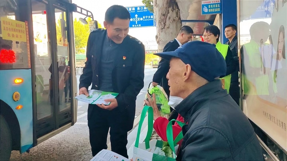 公交黨員、志愿者發(fā)放《服務(wù)手冊(cè)》,認(rèn)真為來往市民和候車乘客講解安全乘車知識(shí)、敬老卡辦理所需資料和相應(yīng)服務(wù)網(wǎng)點(diǎn)等,特別是老年乘客提出的問題,更是耐心細(xì)致的解答清楚明白。