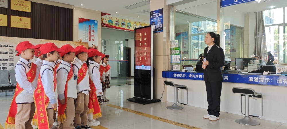 圖/在公交營(yíng)業(yè)廳,工作人員為同學(xué)們介紹了公交IC卡種類以及“學(xué)生卡”辦理流程,通過(guò)實(shí)物演示的方式與同學(xué)們互動(dòng)問(wèn)答。