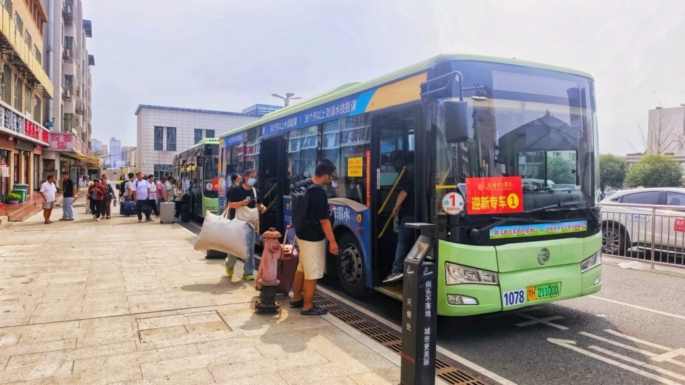 9月6日早上6點(diǎn)00分,市公交集團(tuán)將掛有“迎新專(zhuān)車(chē)”牌子的定制專(zhuān)車(chē)車(chē)隊(duì),整齊地停靠在火車(chē)站北廣場(chǎng)進(jìn)行等待。