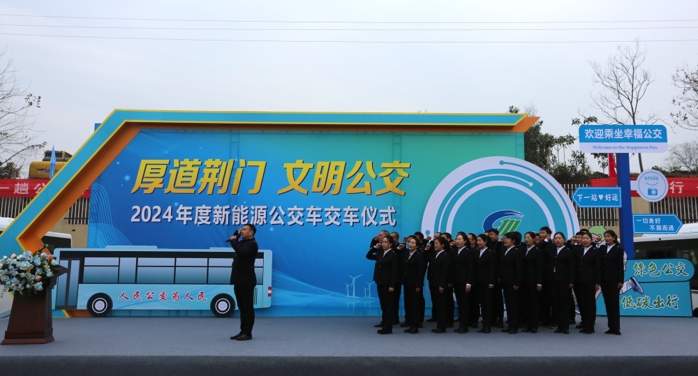 當(dāng)日,我市舉行新能源公交車交付儀式,252臺新能源公交車正式交付,荊門中心城區(qū)新能源車輛占比一舉達(dá)到95.4%,更新速度、質(zhì)效、數(shù)量位列全省第一方陣,市民乘坐公交出行將更加方便,環(huán)保,也更加時尚。荊門公交集團(tuán)負(fù)責(zé)人在接過新車鑰匙時鄭重承諾,將全力運(yùn)營好車輛,精心愛護(hù)好車輛,用心服務(wù)好市民。
