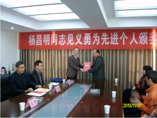 楊昌明,52歲,退伍軍人,也是荊門公交集團一公司39路駕駛員。10月6日下午,楊昌明駕駛鄂H9337公交汽車,行駛至荊門火車站附近,車上一位帶孩子的婦女說錢包被人偷了。車上乘客反映,錢包是婦女正要上車時被小偷偷的,前面跑的那個人就是小偷。楊昌明聽到后,迅速關(guān)上車門,踩下油門,追向小偷。在追上小偷后,楊昌明便打開車門跳下車向小偷猛追過去。小偷見楊昌明窮追不舍,只好扔下錢包跑進一條小巷子。本著安全接送乘客,楊昌明撿起錢包后回到車上,并當(dāng)著乘客的面清點了錢包。錢包內(nèi)裝有現(xiàn)金6200元、多張存折(共58000元)、身份證等。隨后,經(jīng)公交公司報案,錢包由民警交還失主。市見義勇為促進會及東寶區(qū)社會管理綜合治理委員會表示,楊昌明見義勇為、弘揚正氣的事跡經(jīng)包括本報在內(nèi)的媒體宣傳報道后,受到社會各界廣泛好評和群眾的一致稱贊。經(jīng)研究決定,授予楊昌明見義勇為先進個人稱號,并分別獎勵1000元、500元人民幣。
