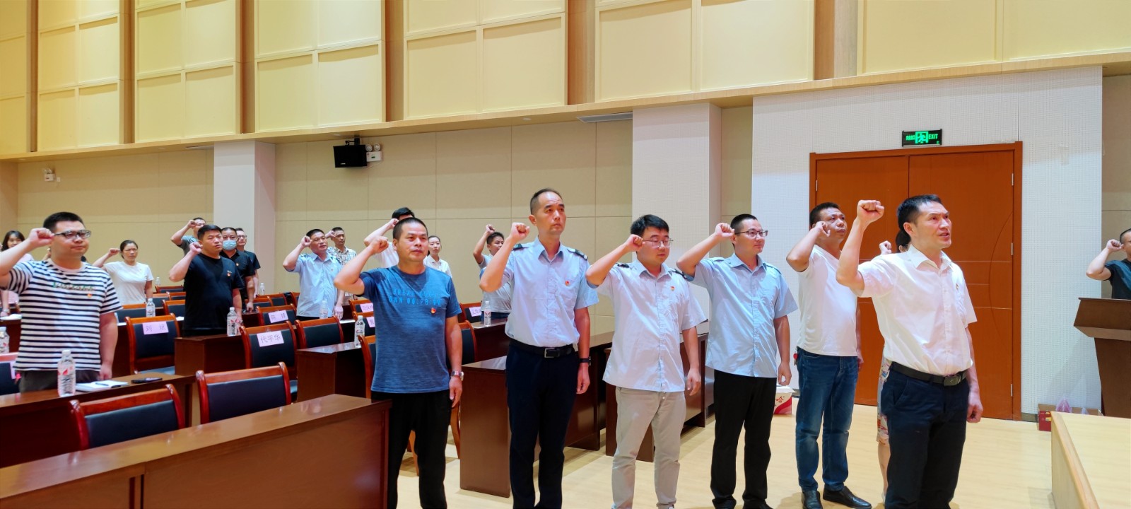 在“七·一”黨員宣誓、“兩優(yōu)一先”表彰大會環(huán)節(jié)。大會首先伴隨著雄壯的國歌聲正式拉開序幕。然后,領(lǐng)誓人公汽一公司書記肖剛與新進正式黨員、納新預(yù)備黨員,以及在場老黨員們一起重溫了入黨誓詞。其次,新進正式黨員為納新的預(yù)備黨員佩戴了黨徽。